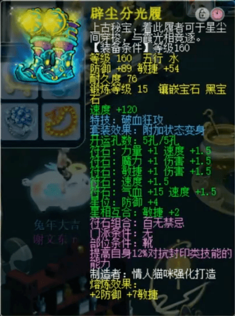 佩饰爆了10点速度、3点防御、17点气血