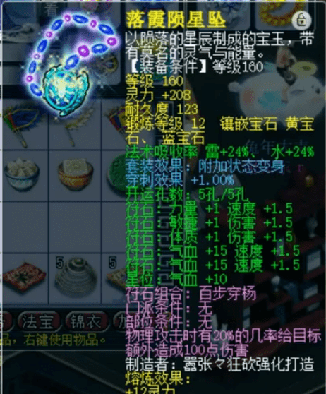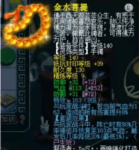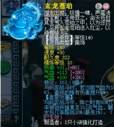 后排灵饰为140级佩饰、140级手镯,3气血3防御