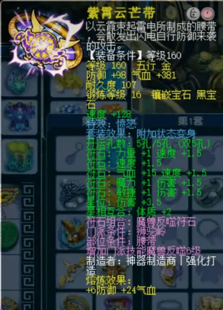 16锻160级愤怒腰带,初防104、气血405