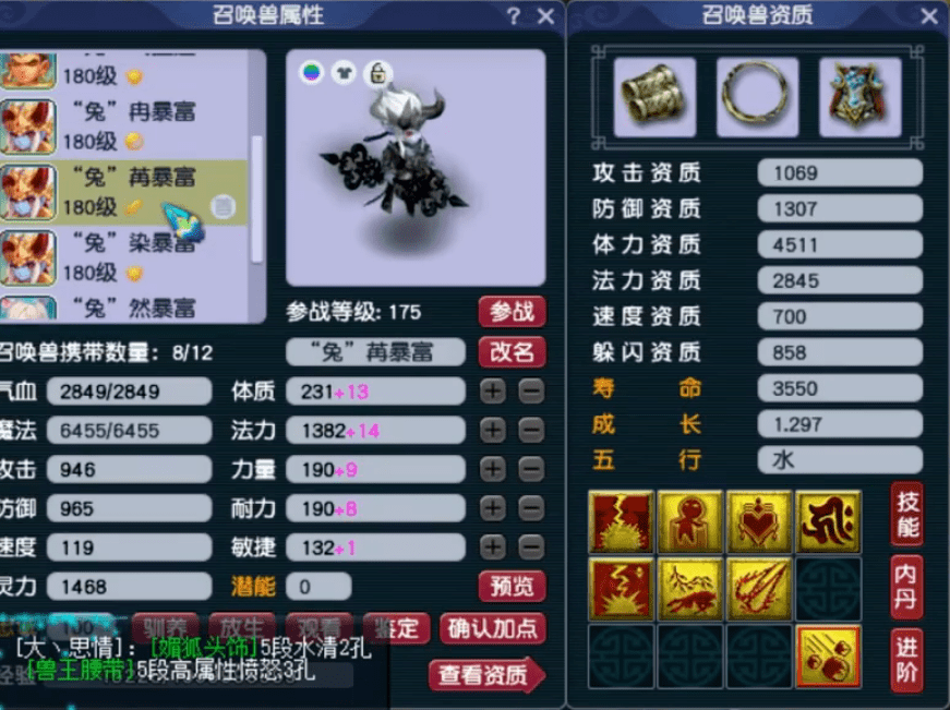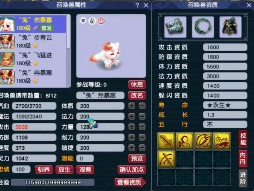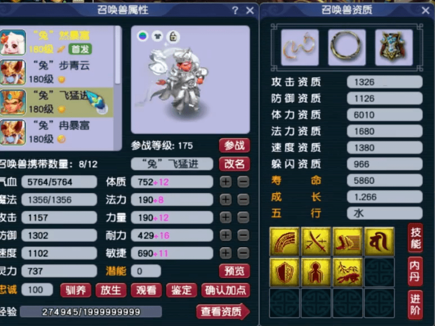 这只宝宝攻击资质1652、成长1.297,资质面板很优秀