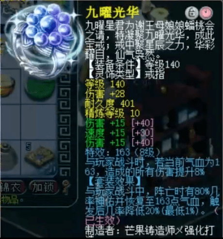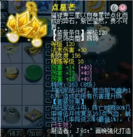 前排灵饰为140戒指、120耳饰,6伤害1速度