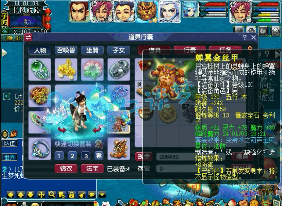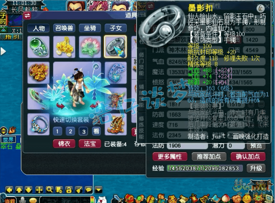 130级葫芦宝贝套铠甲,体魔双加61,打了13锻舍利子。