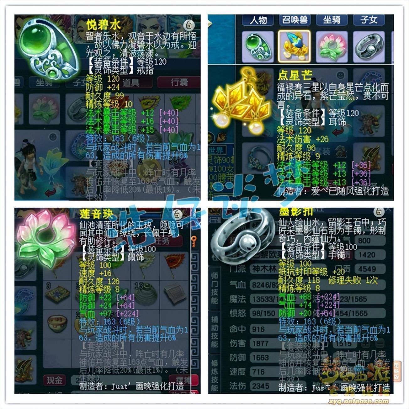 戒指和耳饰下排都是三法暴,戒指打了10锻星辉石,耳饰打了9锻,佩饰下排双防御一气血,手镯下排双气血一防御,全部打了8锻星辉石。