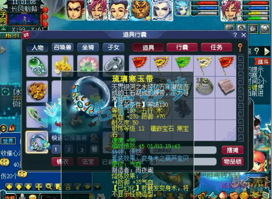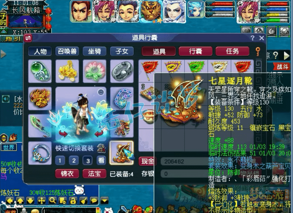 130级永不磨损葫芦宝贝套鞋子,打了11锻黑宝石。