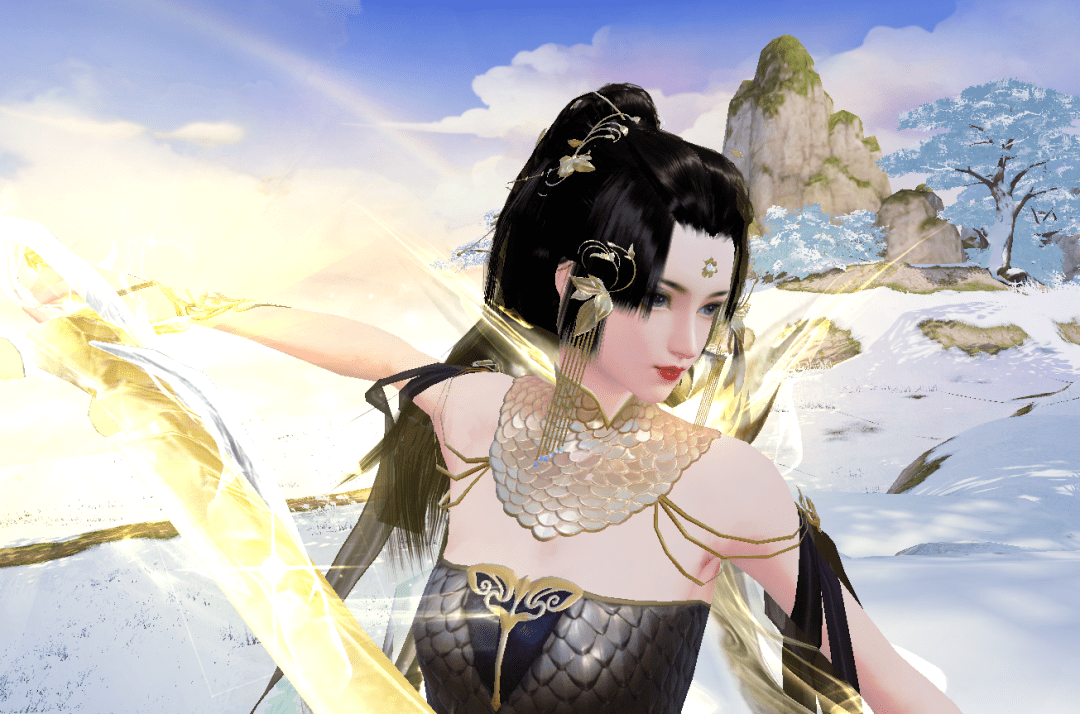 少侠穿上【神武八荒】的铠甲,挺拔潇洒的身姿立于林间。高束白发,精神抖擞,鬓间幻化出五彩流光,眉宇间透出的威严让少侠更有武神之姿,勇武庄重,不怒自威!