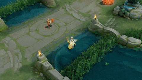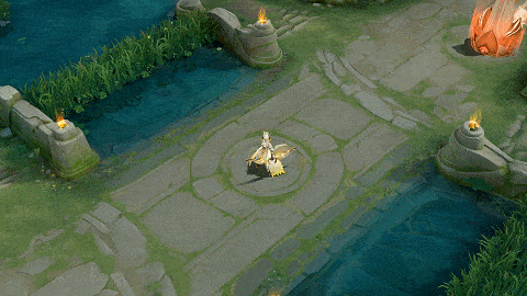 三技能开启后,伽罗会获得光翼之力的加持,同时,召唤出增益法阵,圣火轮廓显现其中,结束时,还会散发出彩虹光辉。