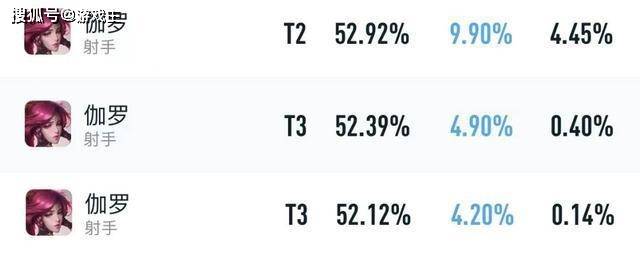 以上是伽罗最新的三大榜单数据,全分段,巅峰赛和顶端局依次排列。