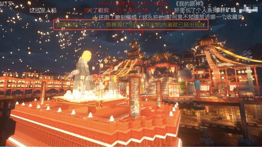 而能让该玩家花费这么长时间来搭建这个场景,也说明了当时内测时,璃月港海灯节就给他留下了深刻的印象,才会一点一滴去完善这个场景,让人看到就觉得震撼。