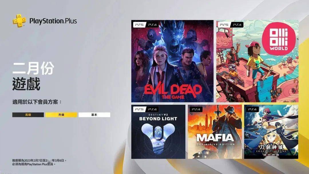 PlayStation官推正式公开了2023年2月的PS+会免游戏,二档游戏目录与三档经典游戏库新增游戏将于不久后公布,阵容如下: