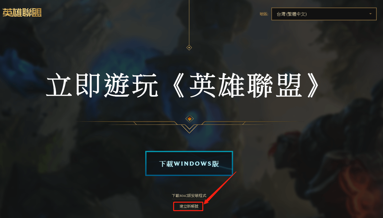 台服账号的注册可以需要在台服官网进行,我们可以直接进入LOL台服官网,在其中点击注册新账号。