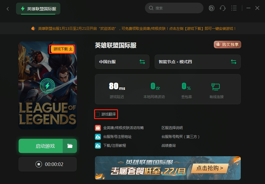 很多玩家找不到台服官网,或者是无法访问,这是因为我们地区差异的问题,可以下载一个奇游解决,加速英雄联盟国际服之后就可以顺利访问台服官网了,里面还有台服账号注册详细地址以及下载专属链接,可以帮助更多的小伙伴快速的体验,还能实现一键汉化哦。