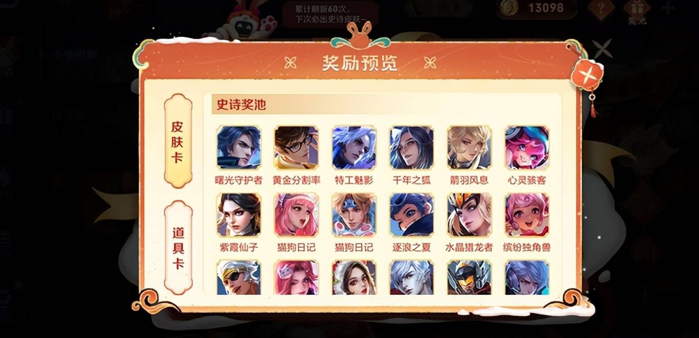 1、累计获得小兔币超过36000个的玩家,统一补发随机史诗皮肤宝箱(与活动奖池内可选史诗皮肤一致);