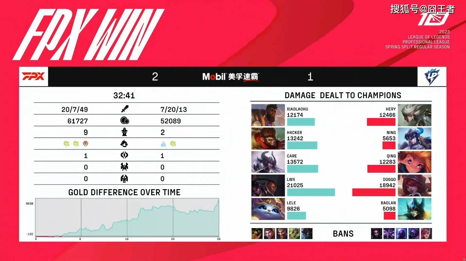 进入决胜局后,FPX仿佛梦回S9,全员用命,从一开始就取得了场面优势,掌控了场上的节奏,一路碾压UP。而反观UP,除了大狗之外,剩余四人全部掉线,变得不会打比赛了。最终FPX在32分41秒,轻松击溃UP,斩获首胜!