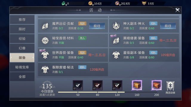 如果是做事比较随心,不喜欢老是看活动中的安排的小伙伴们,也可以经常关注一下主界面右侧的卷轴,这个卷轴会时时展示正在进行的活动,以及下一个活动距离现在还有多长时间,非常精确!悄悄告诉小伙伴们,虽然有些任务要求组队,但是并不是一定要队伍里有好几个人哦,即使只有一个人,但是只要是组队模式就可以参与该玩法了,不过人数少的话难度会大大增加,记得练个小号陪自己过任务哦~