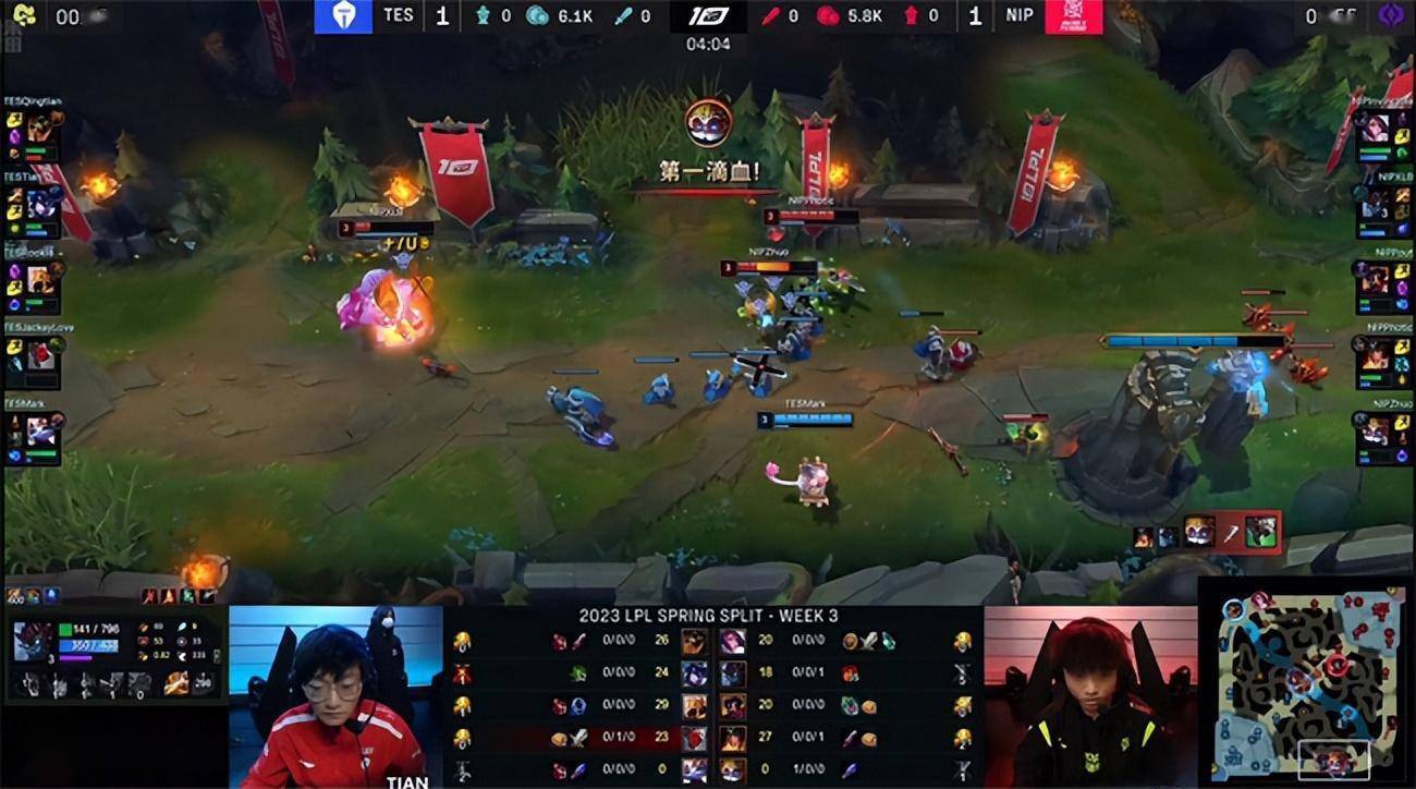 北京时间2月5日,LPL春季赛第三周收官日的揭幕战由TES开赴深圳交手NIP!第一局NIP的BP落于下风,TES上中野前期频频联动打开了局面,NIP被动防守一败涂地,随后在第二局调整状态扳平比分,最终TES技高一筹2-1战胜NIP!