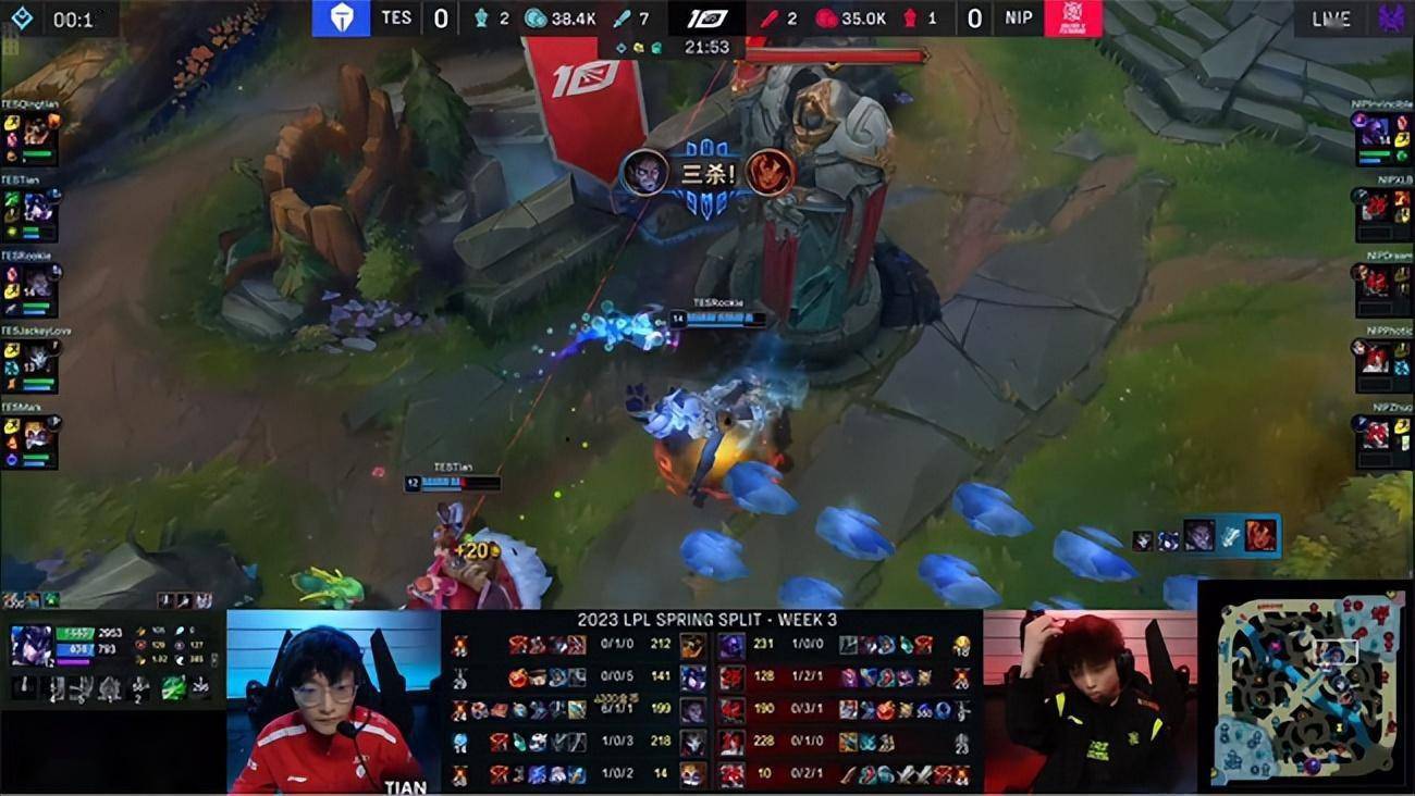 LOL-LPL:JackeyLove老鼠带猫神出鬼没节奏拉满,TES 2-1击败NIP