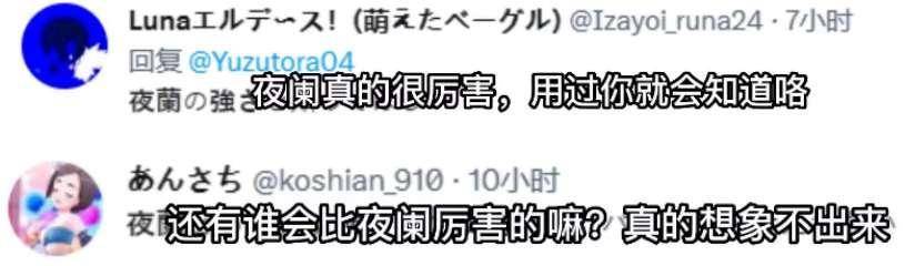 当然,原神玩家为了抽夜兰也是各种花样百出。除了去群玉阁、岩上茶室等夜兰的“老家”玄学抽卡、“献祭抽卡”之外,老外还整了很多花活。比如知名主播Bran就在直播的时候Cos了一把可莉,还专门跑到新地图的“王之座椅”上坐着,以祈愿夜兰来到自己身边。日服玩家也在火热讨论夜兰,直接化身夜兰狂热粉丝给大家安利,不难看出夜兰这个角色的确很完美,把国内外的玩家迷得不要不要的。