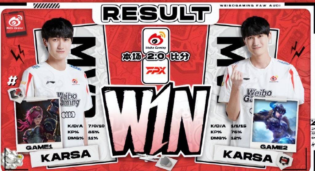 相较于JDG之前的对手,WBG是真正的强队。目前,WBG的成绩相当不俗,2胜1负。打野选手Karsa近段时间的状态极为的火热,在上一场同FPX的比赛中,Karsa一手猪妹一手蔚,节奏带的飞起,轻松二连MVP带领WBG零封对手,因此“双K之战”值得关注。