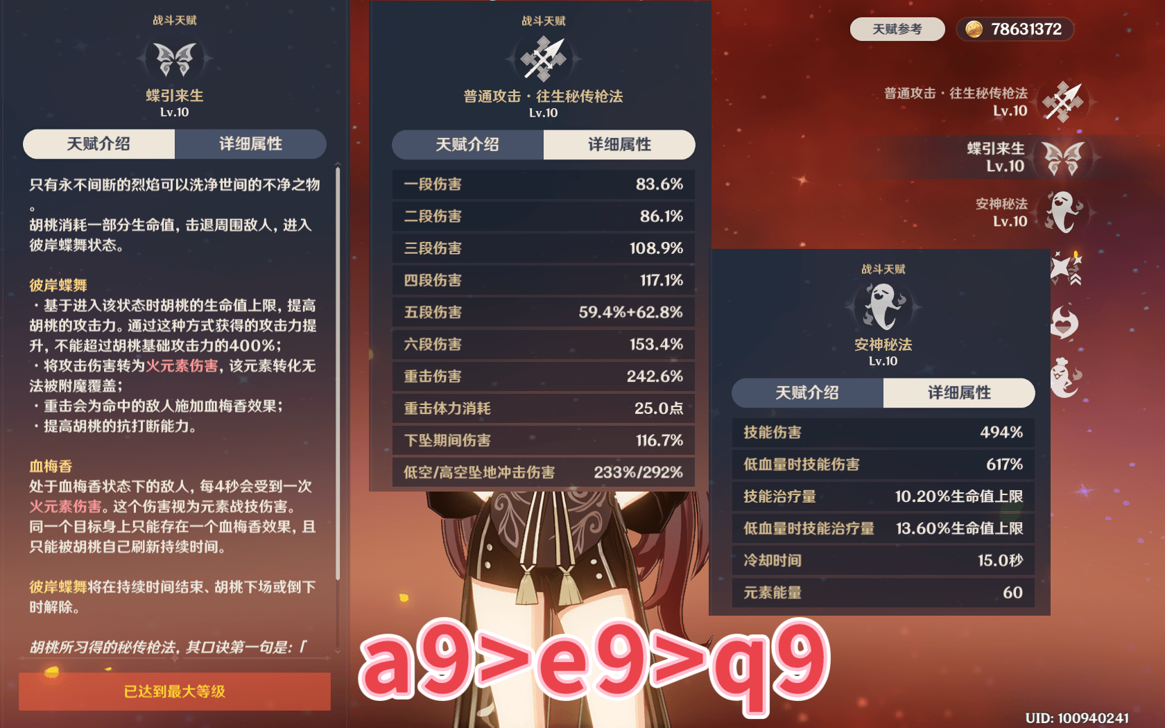 于是天赋方面加点推荐是a9>e9>q9,是的,她全都要点并且升满。