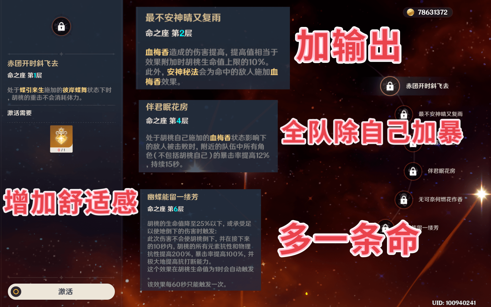 命座:1和2命推荐大家抽,1命可以很好的提升操作舒适度,变相提升部分输出,当然,手法好的话也还好,2命是实打实加输出了。