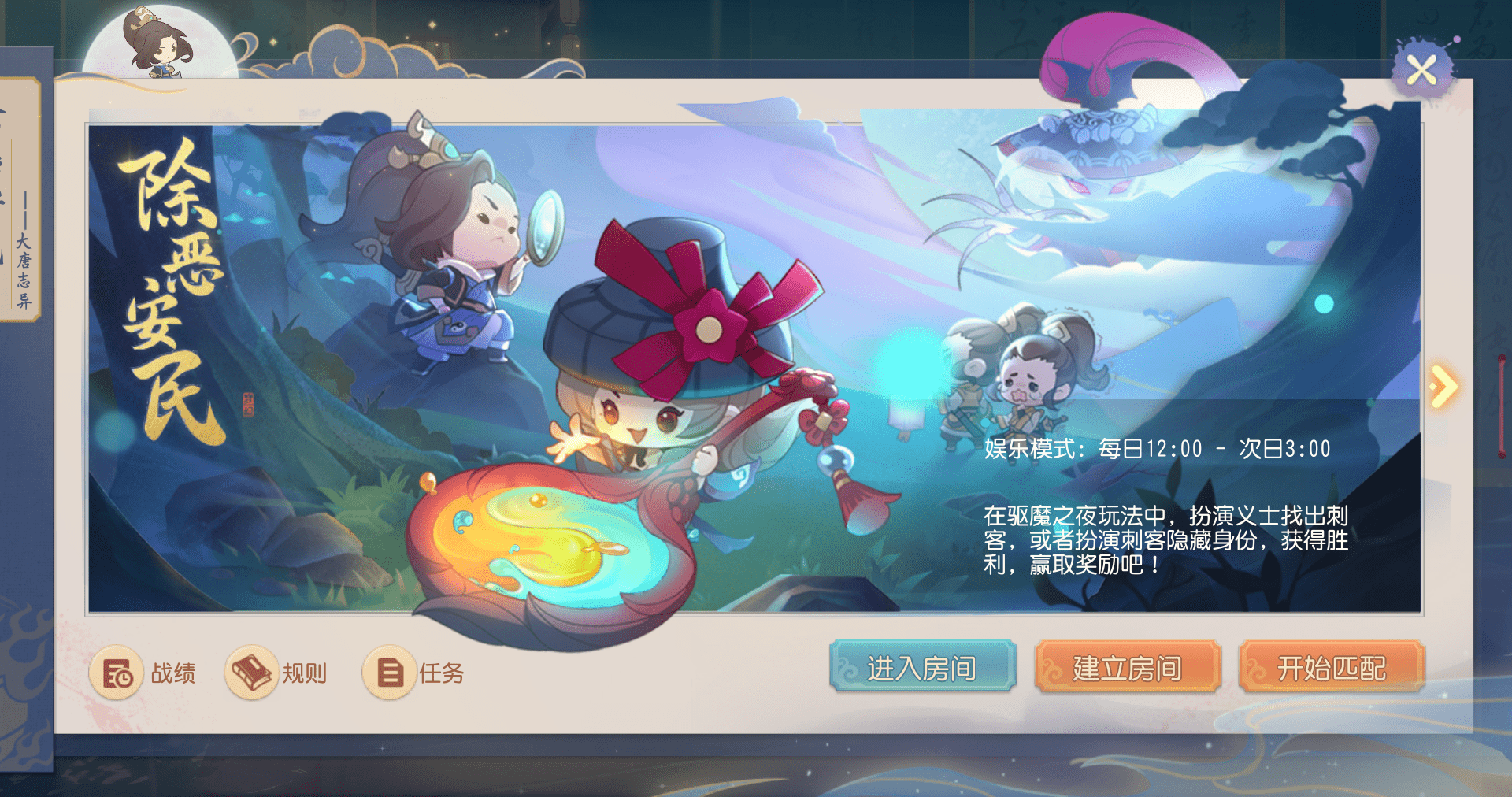 3、友好度≤14999,参与【驱魔之夜】,情缘同游,传书;