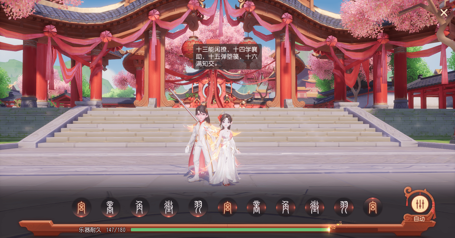 2、友好度≤9999,可以互赠鲜花,组队演奏乐器;