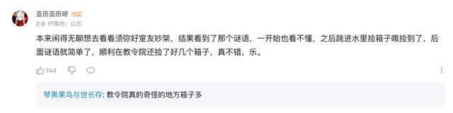 其实这项隐藏任务不仅显(难)眼(找),也很“离谱”:大佬可能会因为找不到崩溃,而“萌新”却很容易发现!原来有些休闲玩家虽然也打到了须弥,但因为操作还不太熟练,偶尔会不小心掉到水里,从而意外发现水面下的宝箱。没想到有朝一日,操作好也成了一项烦恼!