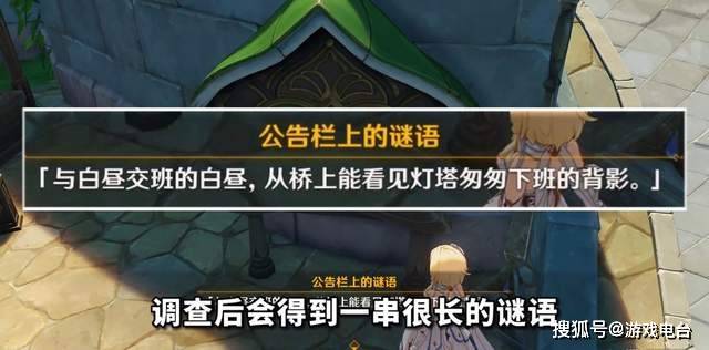 这个任务就是「我明白了!我明白了!」。攻略博主“孤影_原神”分享了自己意外发现隐藏任务的过程:第一条线索藏在领取每日委托奖励路上的公告牌。公告牌上有一条谜语,根据谜语里提到的地点,来到灯塔下的桥,就能发现漂浮在水面上的宝箱了!