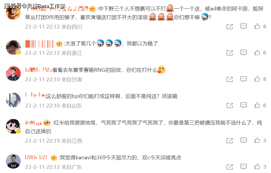 JDG的官博在输掉这场比赛后惨遭爆破,主要是这场输得太离谱了,稳赢的局被送输了。于是很多粉丝要求红米教练好好骂醒这些选手,膨胀了飘了,葬送好局,这种职业态度不可取。也有人直接点名说中下野2人问题最大,打得太浪了。