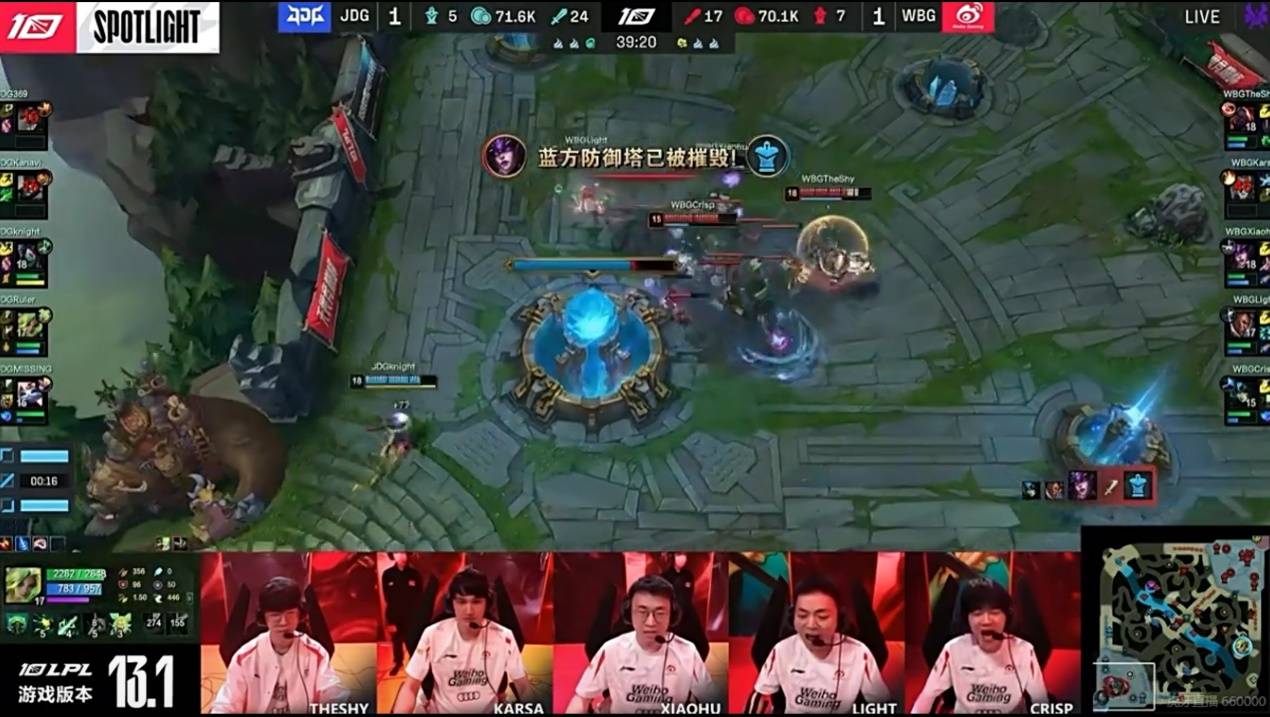 个人认为WBG此轮比赛赢下,除The Shy之外其他四个队友的表现都是非常出色的,也正因为如此,WBG目前还没有达到最佳竞技状态,The Shy还需要调整自己的打法,很多时候The Shy会做出一些风险性较高的操作,导致团队陷入被动。
