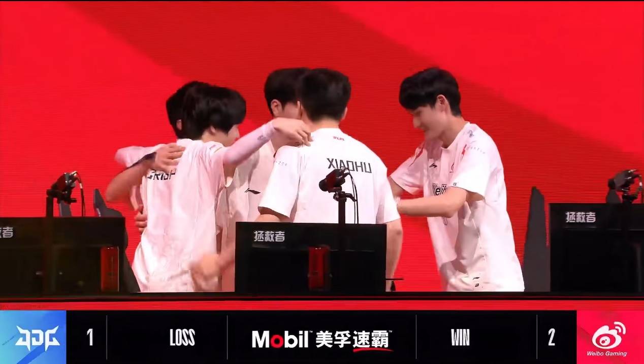 击败JDG之后,WBG选手也是非常兴奋地庆祝胜利,小虎也是得到了来自队友的赞扬。
