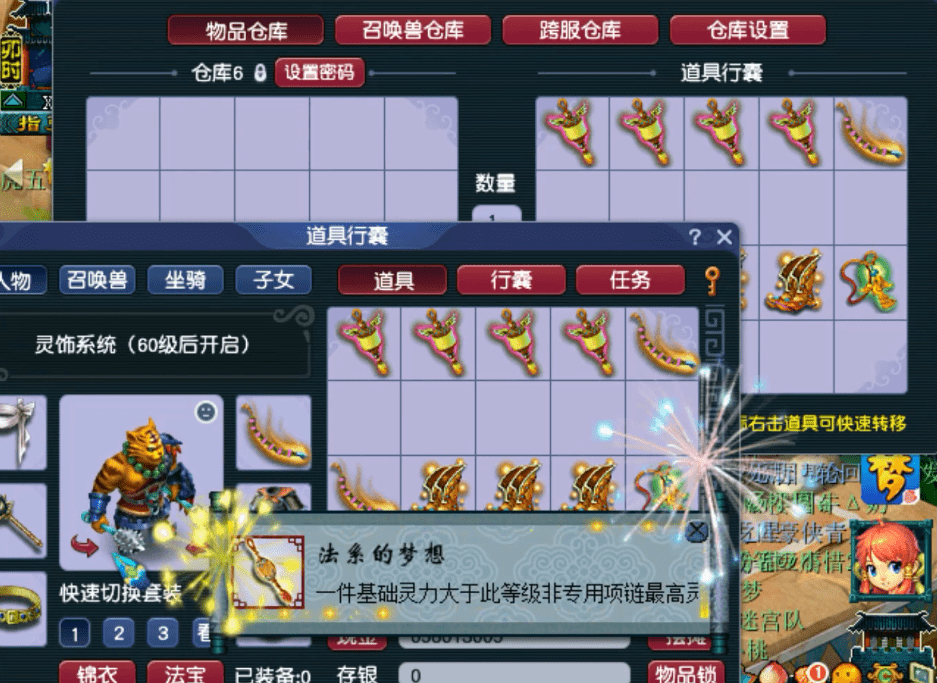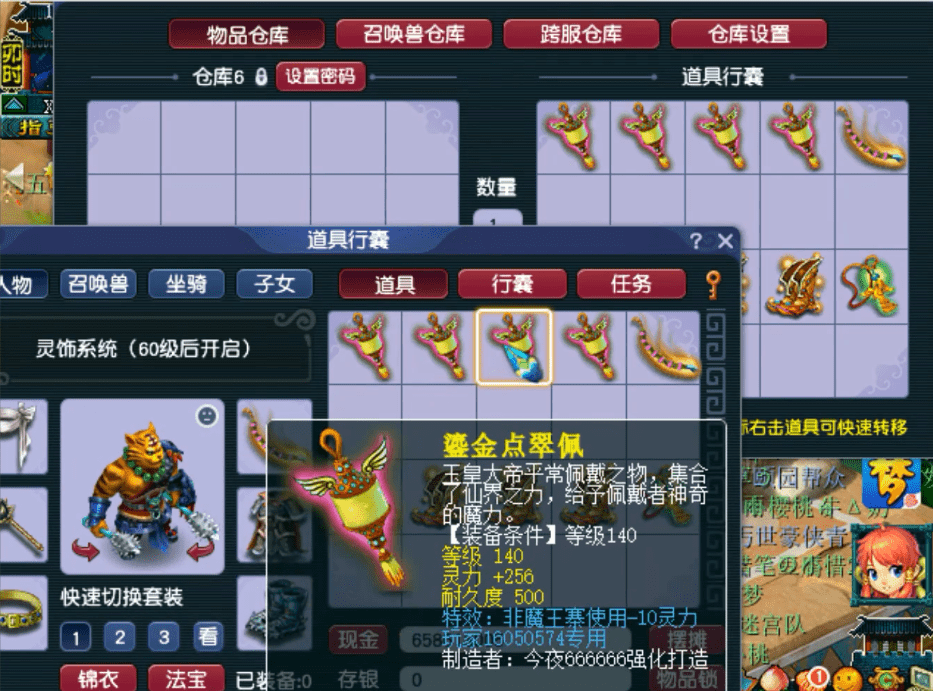 一条140级专用项链,初灵256,非魔王使用减10灵力,灵力还是有点欠缺,没什么大用。