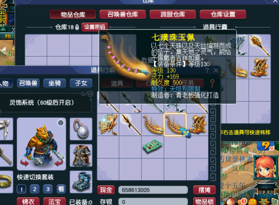 这位老板准备了整整16车的军火,差不多是160件,基本都是130~140级的装备,武器、项链、鞋子和腰带等等都有,我只挑着今天的重点说。