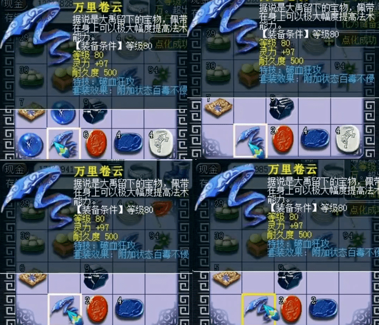 然而接下来发生的事,让玩家哭笑不得。第1个、第2个、第3个、第4个附魔宝珠,这条80级破血狂攻项链所附带的套装效果居然全部都是百毒不侵!连续4个附魔宝珠,居然点化出了相同的套装!