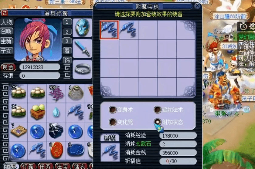 破血狂攻,这个特技可是物理系的专用特技。因此,玩家将点化的目标锁定了附加状态。而附加状态的套装,一共有18种。其中,跟这条项链最匹配的当属碎星诀套和变身套。也就是说,每次点化玩家都有九分之一的概率,将心仪的套装收入囊中。