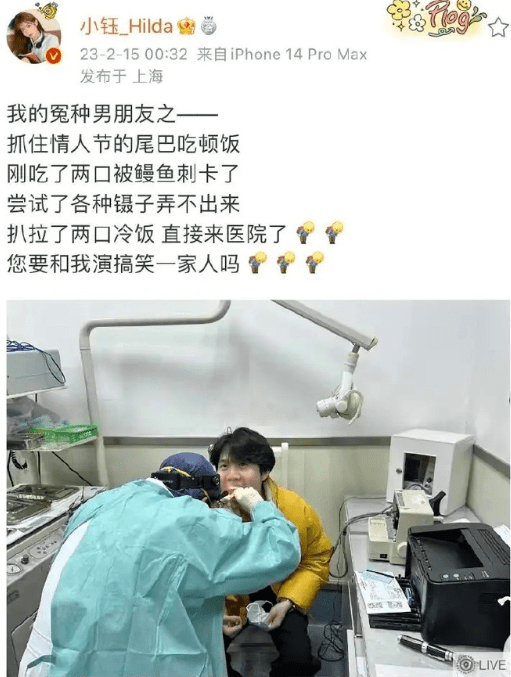Rookie和小钰都在上海,两人也是忙完赶着情人节的尾巴相约吃饭。不过,这段饭吃的有点坎坷,Rookie吃了两口鳗鱼被鱼刺卡住喉咙,尝试多种方法都不能将其拿出,最终小钰只能送Rookie去医院拔刺。