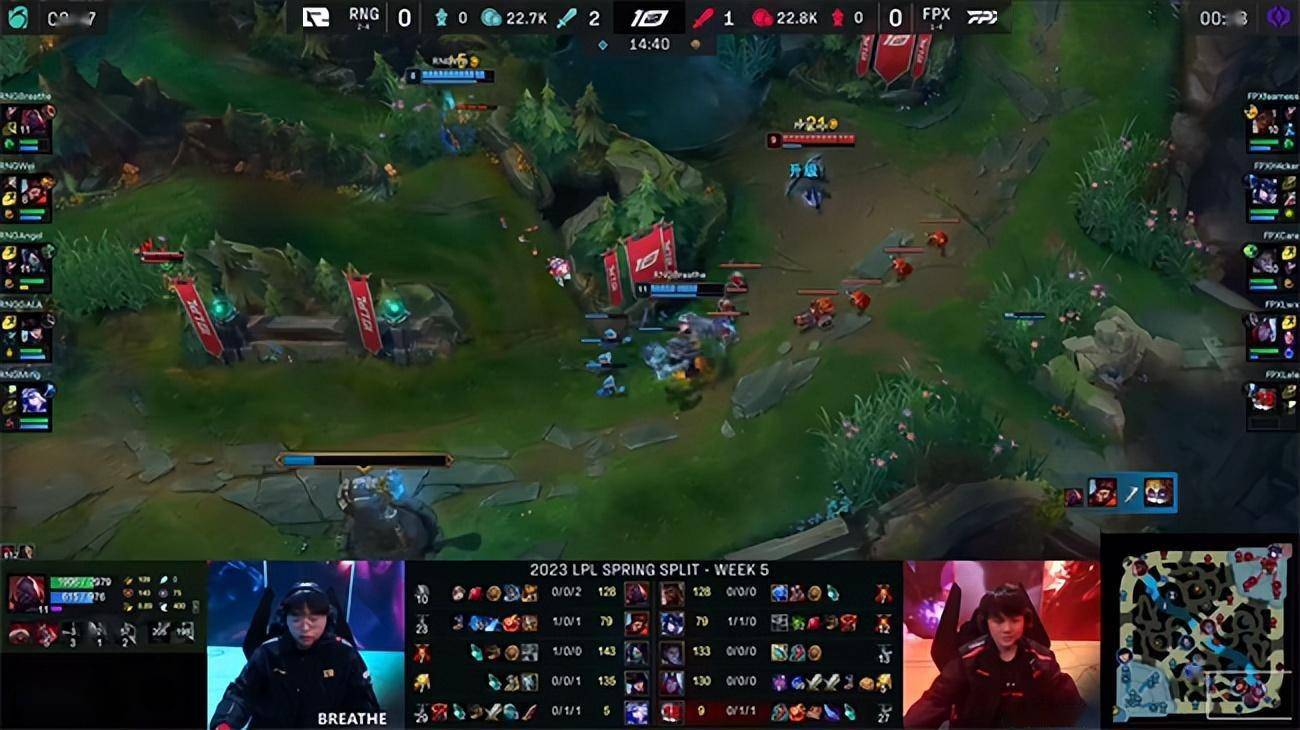 2023 LPL春季赛常规赛第五周第四日,RNG战队对阵FPX战队,两队在前中期打的空前激烈难舍难分,RNG凭借中后期更强大的团战配合与运营决策连下两局,尤其是在第二局里险些被翻盘的情况下又通过果断的反打完成翻中翻,恭喜RNG 2-0战胜FPX。