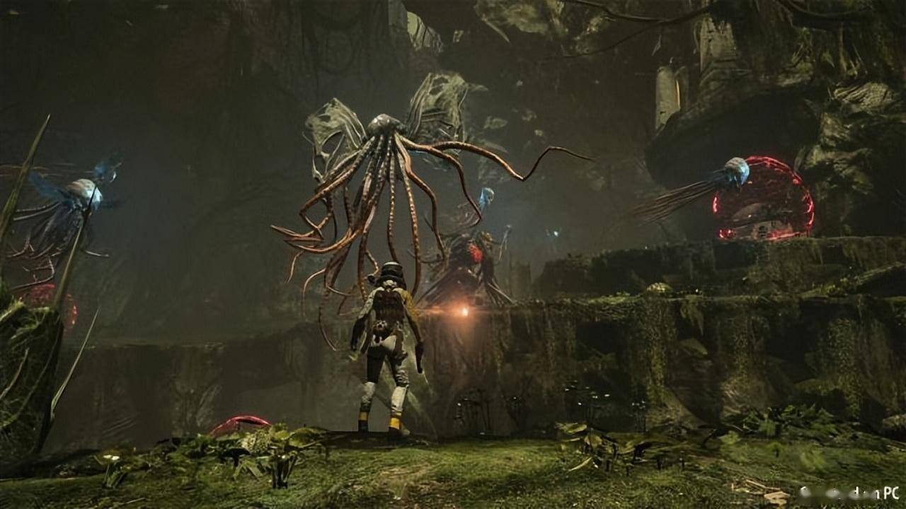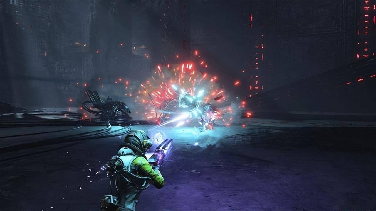 未来感的故事、画面视效与武器设计 虽然在过去的一年,什么在一个奇奇怪怪的外星环境中打各种十分恐怖的生物已经让我习以为常,比如《蔑视》、《木卫4》、《信号》、《死亡空间 重制版》,不过要说到“未来感”,尤其是武器系统,《死亡回归》在其中大概还是可以算得上首屈一指: