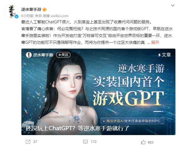 ——还没玩上ChatGPT?等等逆水寒手游就行了