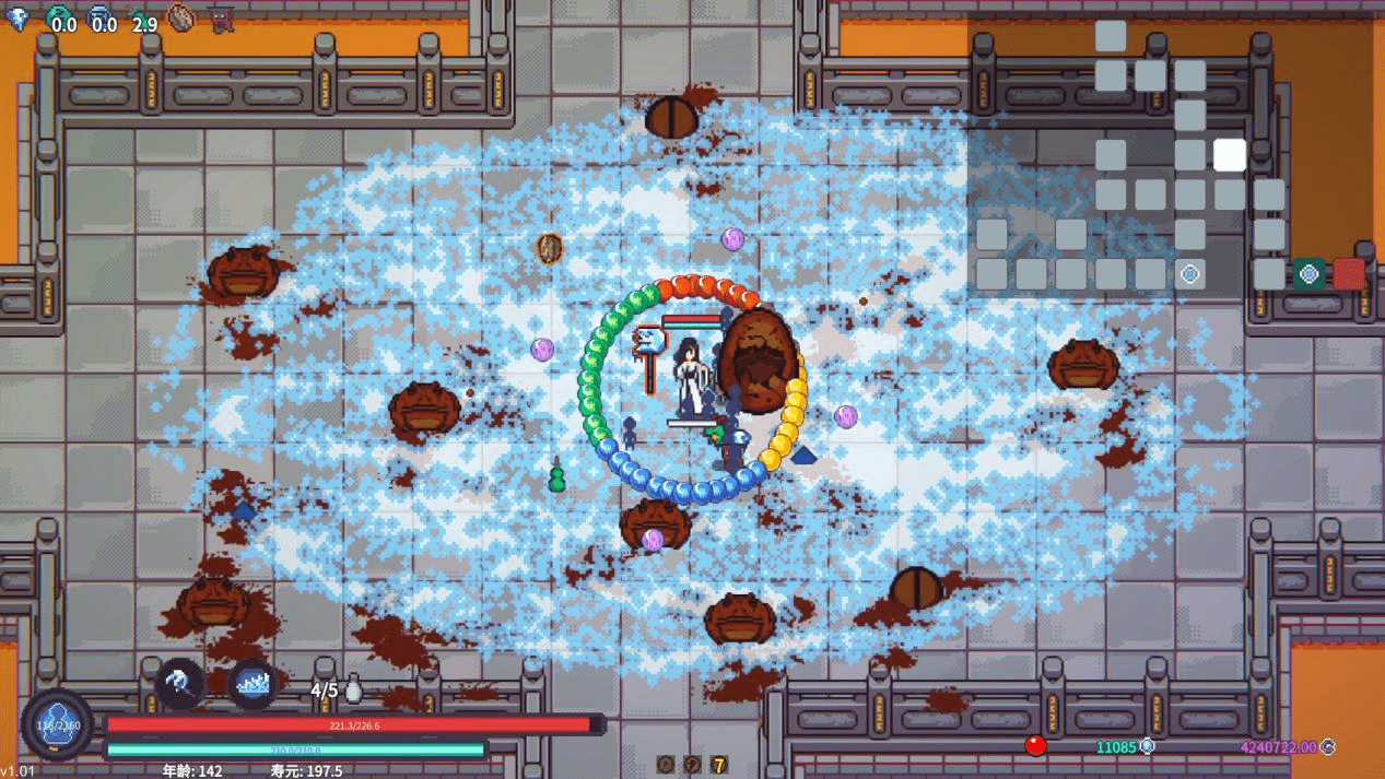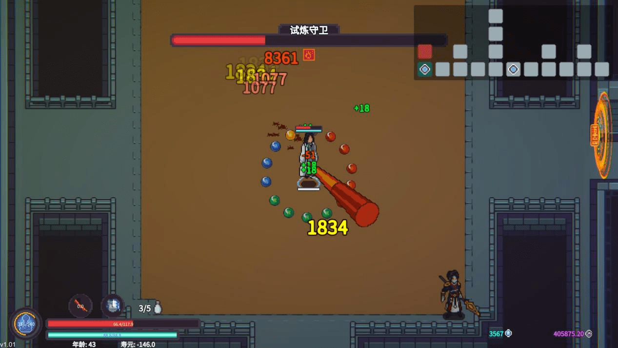为了让《修仙故事轮回》的修仙味有更进一步的体现,它甚至在肉鸽玩法中引入了寿元的概念——玩家探索每张地图将会花费一寿元,同时增长一岁。一旦寿元到零,则意味着玩家在仙途中寿终正寝。