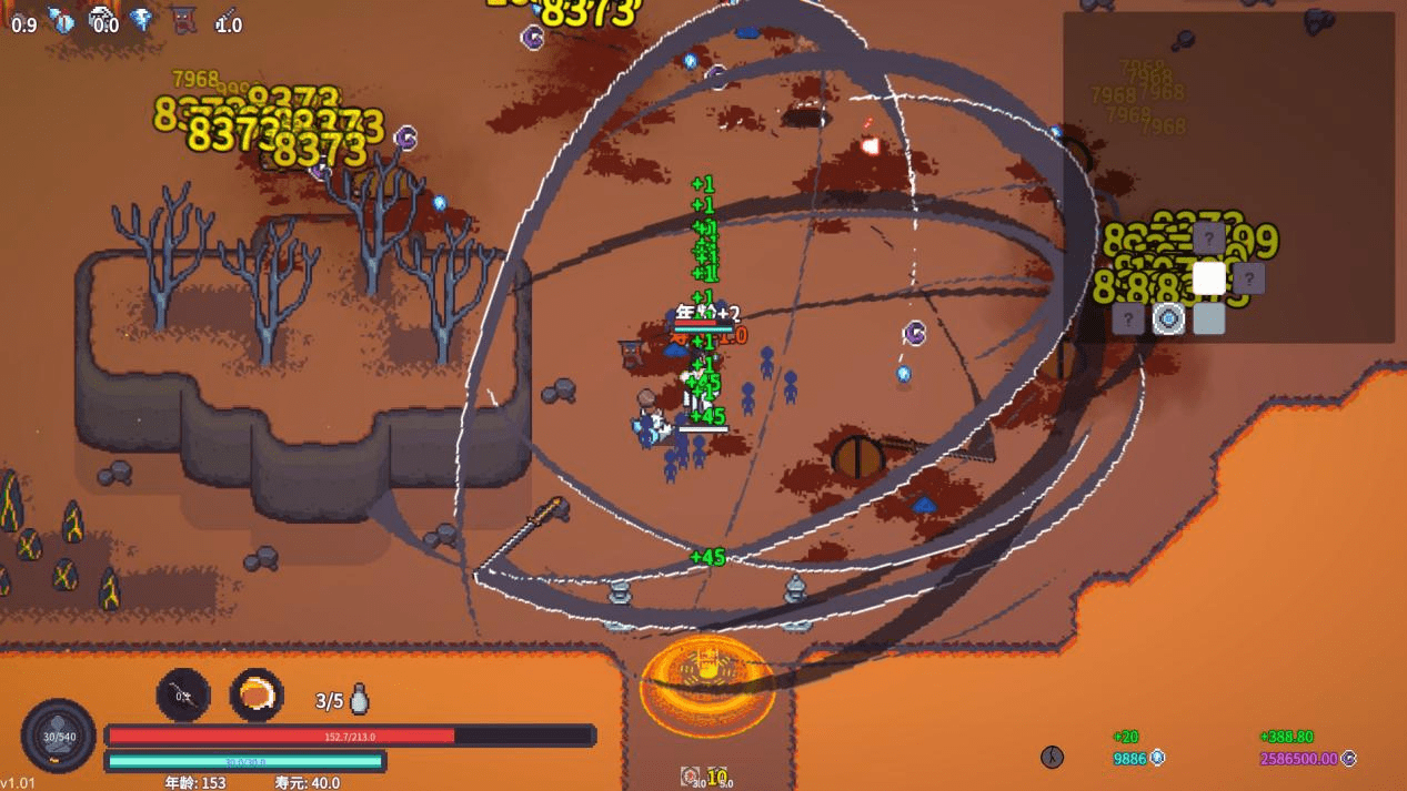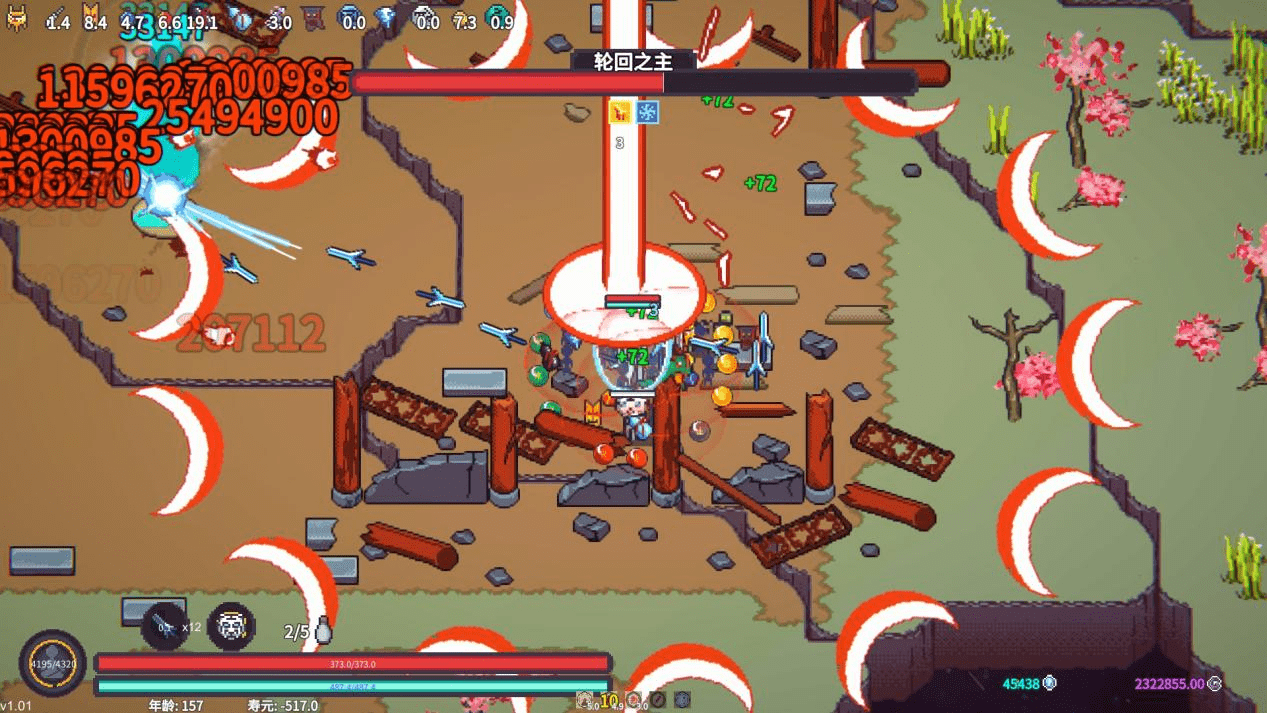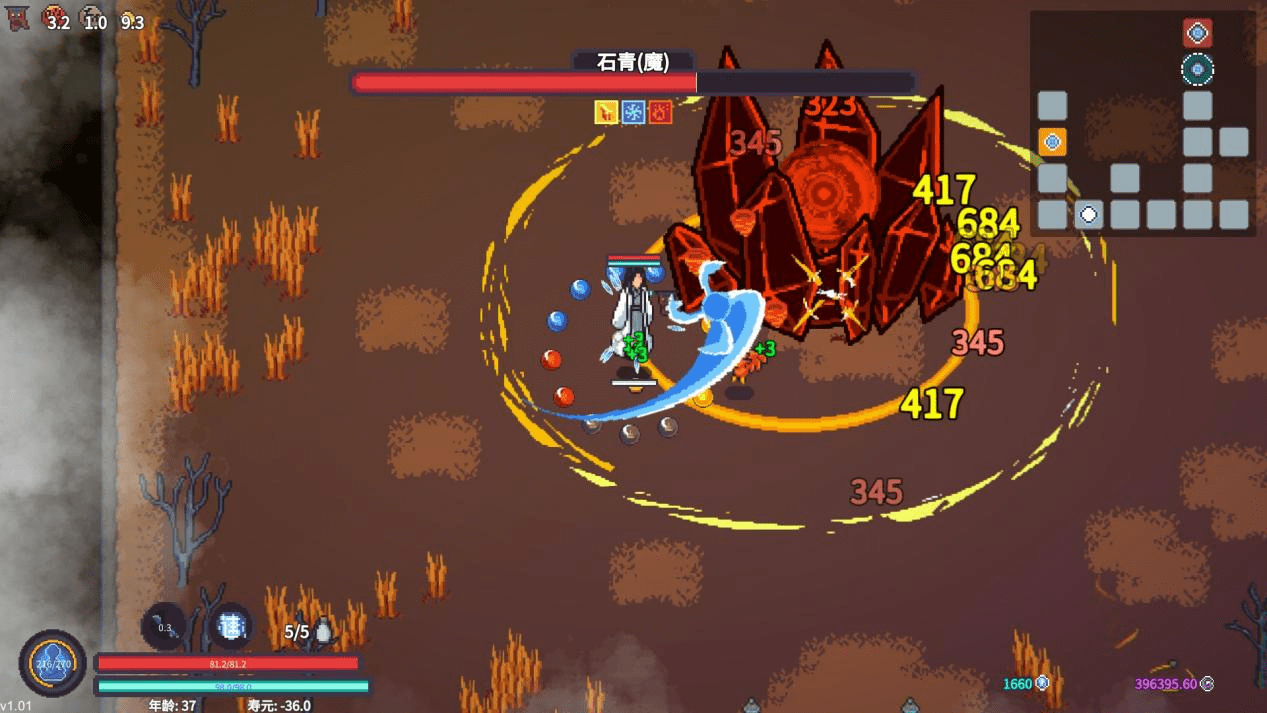 游戏中的BOSS战,几乎没有阶段与机制可言,游戏中的战斗,仿佛你打你的,我玩我的,极其自闭。当然,这也有底层设计的原因,《修仙故事 轮回》是一款极端的,纯粹的数值堆砌型肉鸽游戏,它几乎没有动作元素。