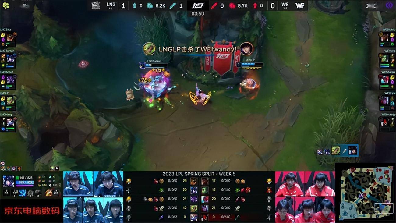 LOL-LPL:LP泽丽超限爆闪贴脸三杀,LNG团战碾压2-0击败WE