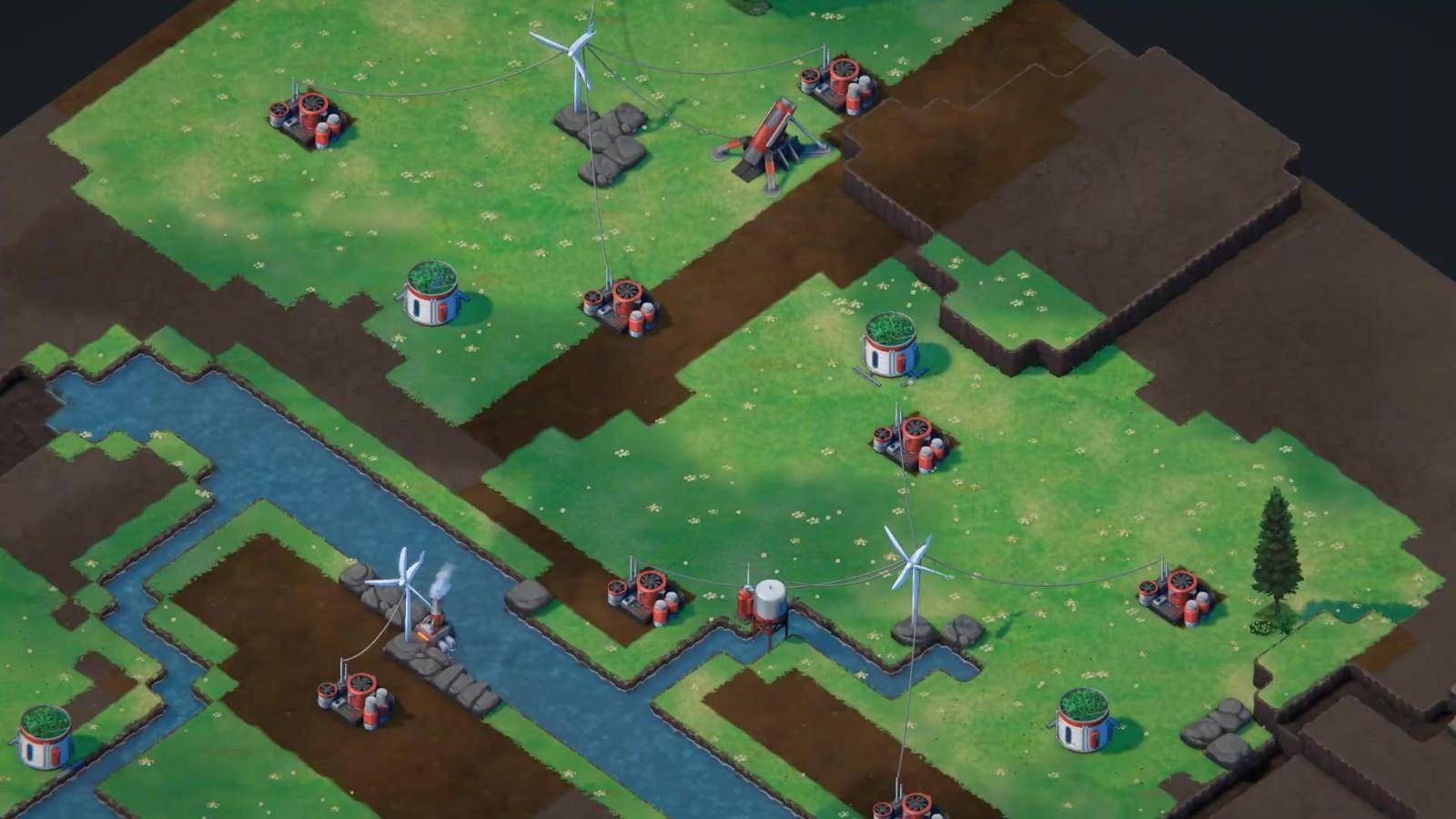 Terra Nil采用程序生成的地貌,这意味着每次游玩过程都各不相同。围绕随机、困难重重和难以预测的地形规划建造——包括蜿蜒的河流、山脉、低地和海洋。
