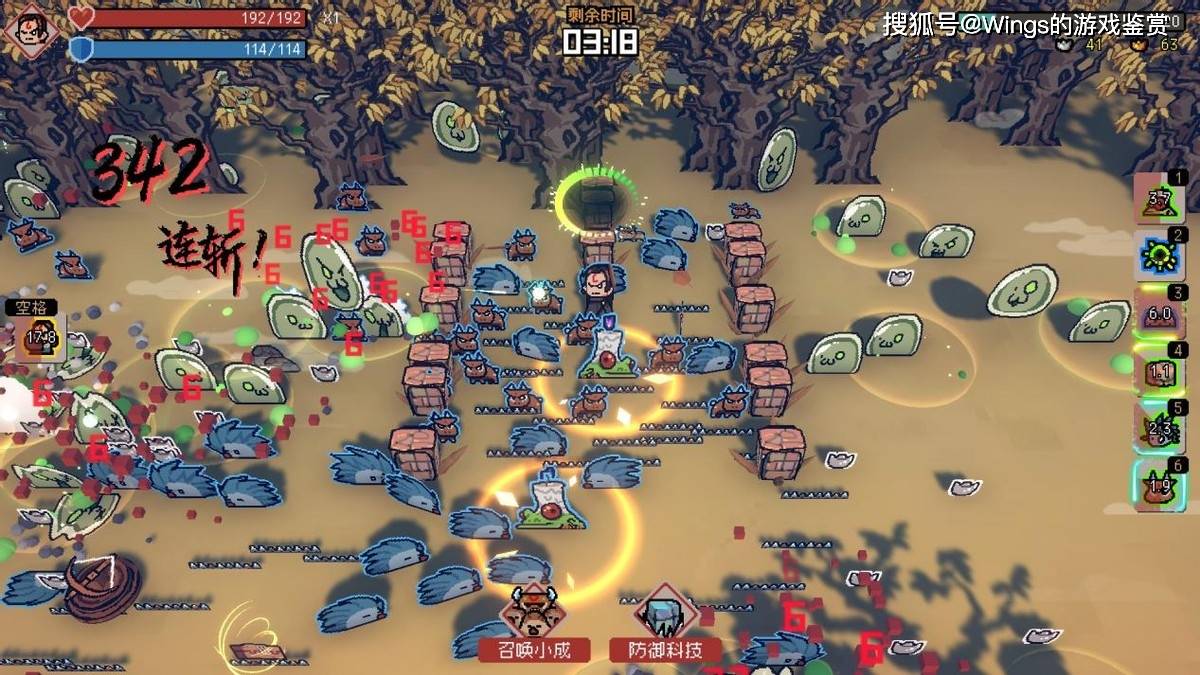 另外在战斗方面我不理解的一点是游戏内的敌人居然设置了碰撞体积的存在,这是一个什么概念?简单来说在同类游戏中在后期12分钟左右时因为敌人数量剧增和血量奇高等问题玩家往往会面对被“包围”的现象,但是打不过我们完全可以避战逃离,因为没有设置碰撞体积的存在玩家只需要付出一些生命值作为代价即可突破敌人包围圈。