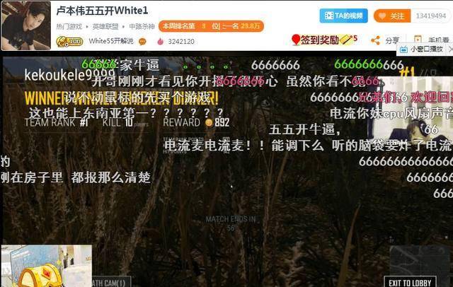 再来看五五开复播后,依然没有放弃玩绝地求生这款热门游戏,昨晚五五开虽然没能再现往昔的29杀吃鸡,可也打出了14杀9杀12杀吃鸡的画面,