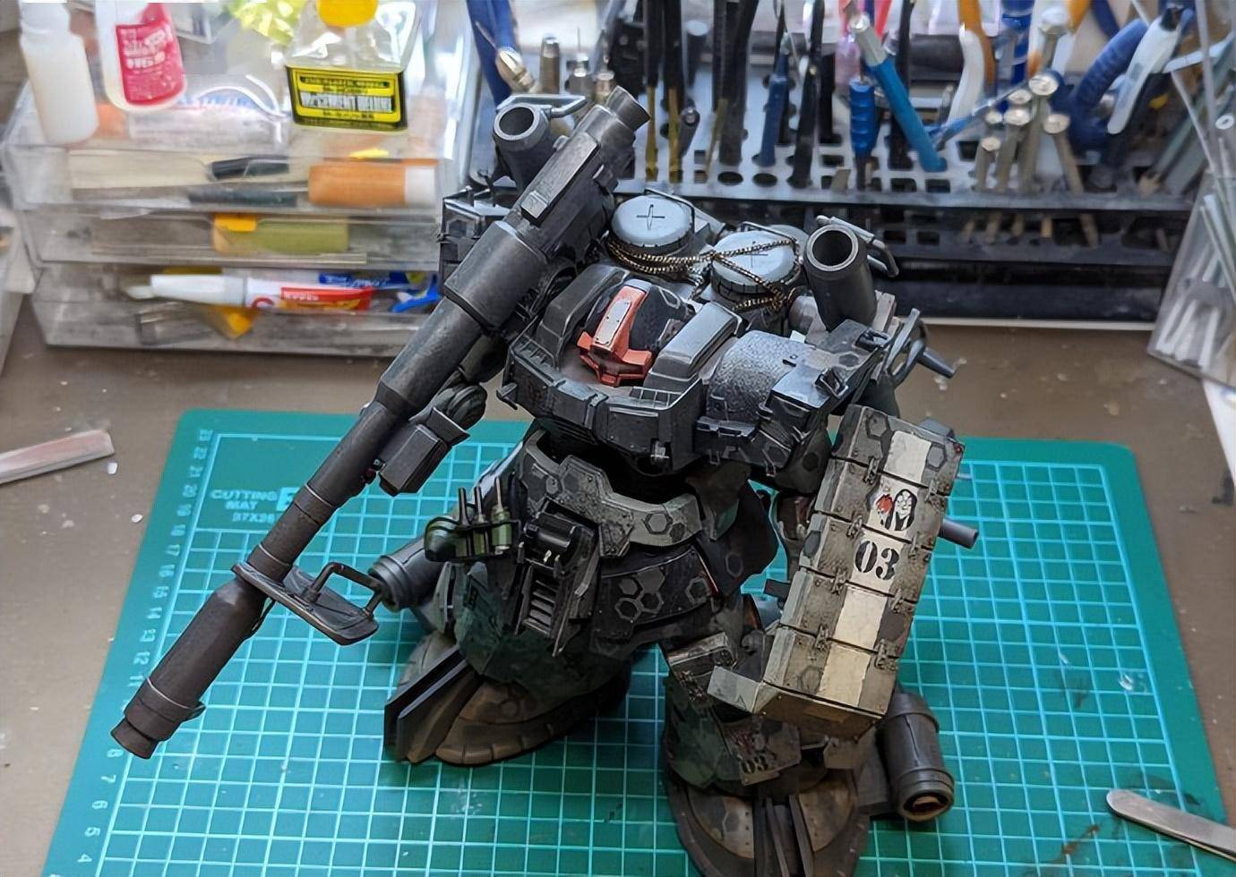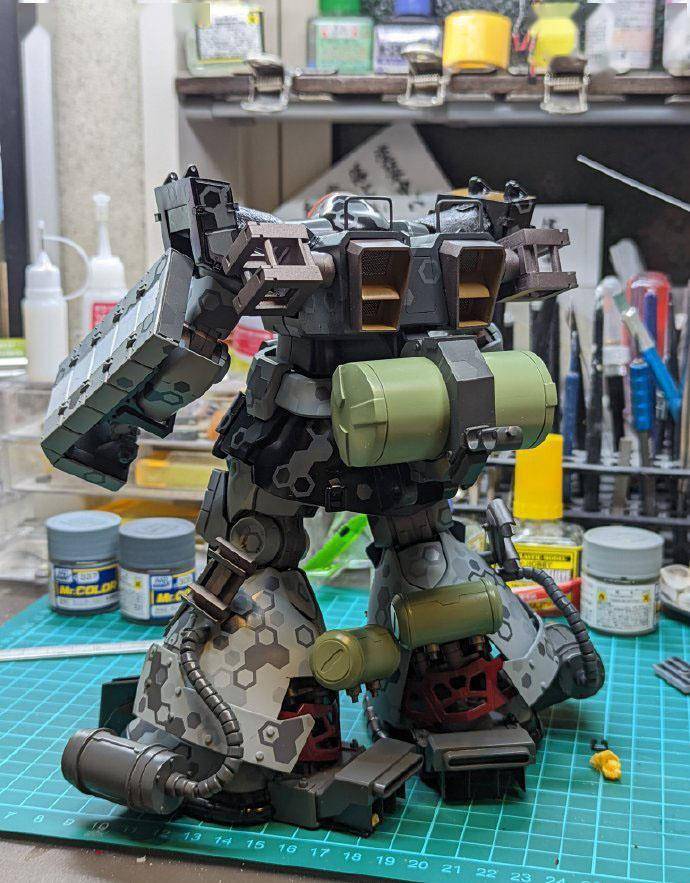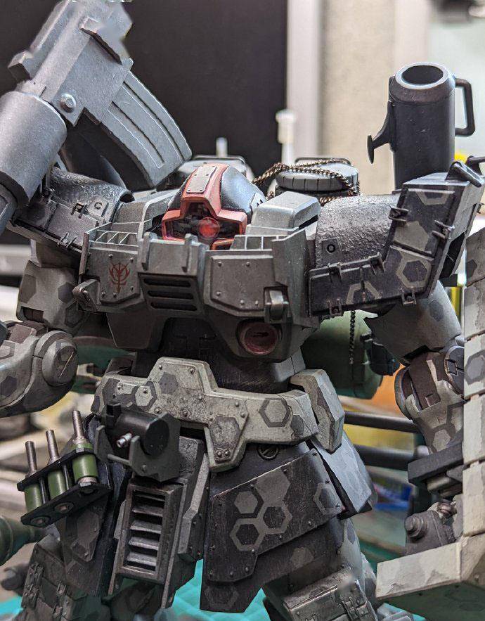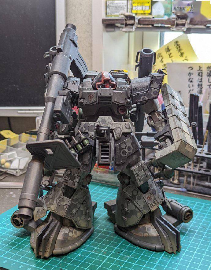 大魔与扎古类似都是高达系列作品中人气较高的杂兵机,因为机体壮硕的外形设计,整体看起来比较有男人味。如果为它搭配一些装备再换涂迷彩涂装会变成什么样呢?接下来为大家带来的是模友PAYAWO_M的全装备搭载,迷彩涂装MG比例大魔模型。