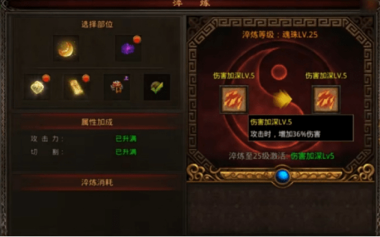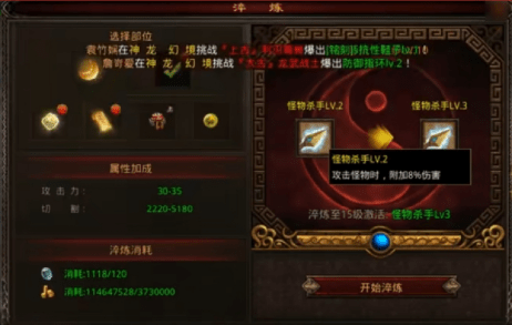 淬炼包含勋章护符盾牌、魂珠宝石、面纱等等。在游戏前期资源有限的情况下,很难做到雨露均沾,这就会导致升级的不均衡。很多玩家为了快速刷怪,会选择优先升级勋章,但小编认为,升级面纱比较重要。面纱可以给怪带来大量的伤害,从性价比方面来讲会比勋章更好。