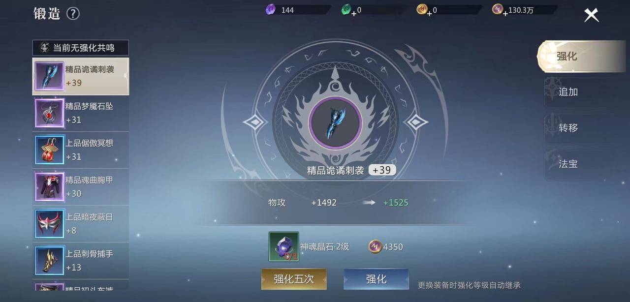 一、装备系统中设置了强化、追加、宝石、转移等各种选项,以帮助玩家打造更多不同方向的高效武器,提高战胜率。以下重点介绍追加、宝石和转移3个主要的功能地效果。装备额外增加后装备星级越高成功率越高。追加时,设定好幸运值,玩家的追加失败,则幸运值会增加,直到幸运值满时,则下次的追加必定成功。如果玩家更换身上的装备,附加的星级会嫁接到相同位置的装备上,不会造成浪费哦。