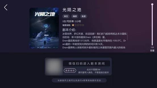 我发现这是一个测试版的功能模块,里面目前一共有9个剧本杀,1个狼人杀,我既然带着两个妹子,当然选择剧本杀啦,我一个个找了下,发现有个欢乐本,看难度指数,是个相对简单的无DM本,而且可以反串,关键是2到8个人都能玩,于是根据上面的指引,扫了下二维码(如图三):