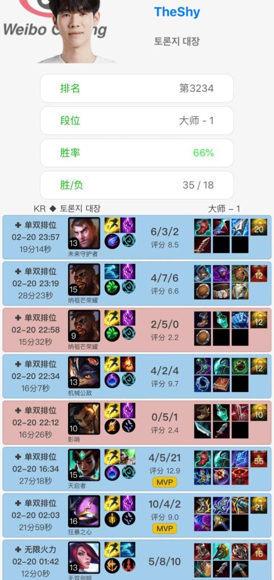 但最近The Shy的排位状态是很好的,他的号已经是打到了大师的段位,而且胜率高达66%,不同的英雄都有使用过,看起来The Shy最近的训练是变得更加积极了,先让自己的段位提上去,更多地匹配到职业选手,加强对线细节,这是The Shy目前的主要任务。